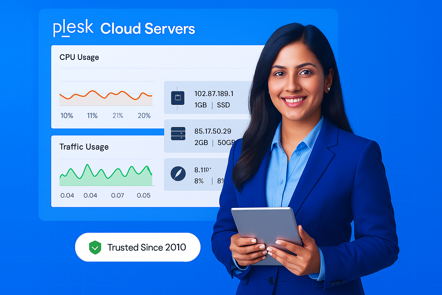 100% Plesk compatible Cloud Servers. Now manage your Cloud Server account with total ease with Plesk, the most intuitive and feature-rich control panel. Our Cloud Servers are integrated with the Plesk panel, so you don’t need to get into the nitty gritty installation part. Develop, build and grow your web projects with convenient Plesk Cloud Server.